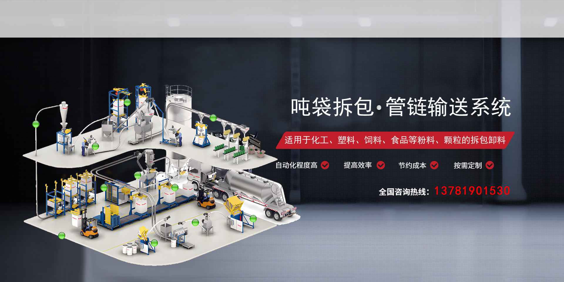 自動拆垛機 全自動拆包機 噸袋拆包機 管鏈輸送機 無塵投料系統 成套生產線 篩分設備 輸送設備 提升設備 自動計量生產投料系統
